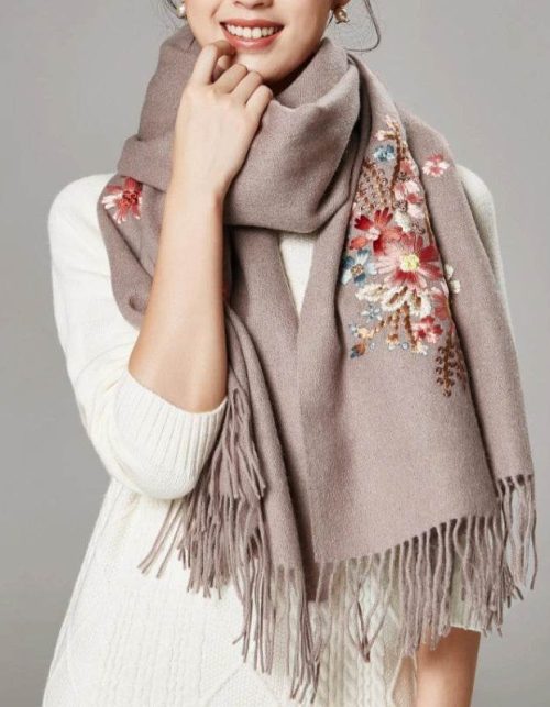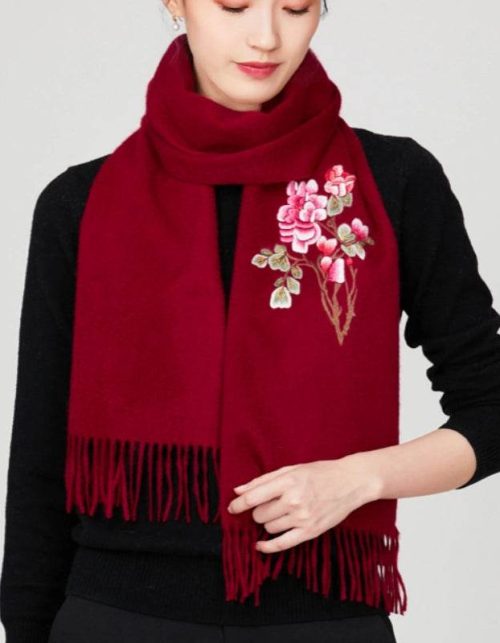Handcrafted Su Embroidery Cashmere Scarf Warm Winter 200x70cm