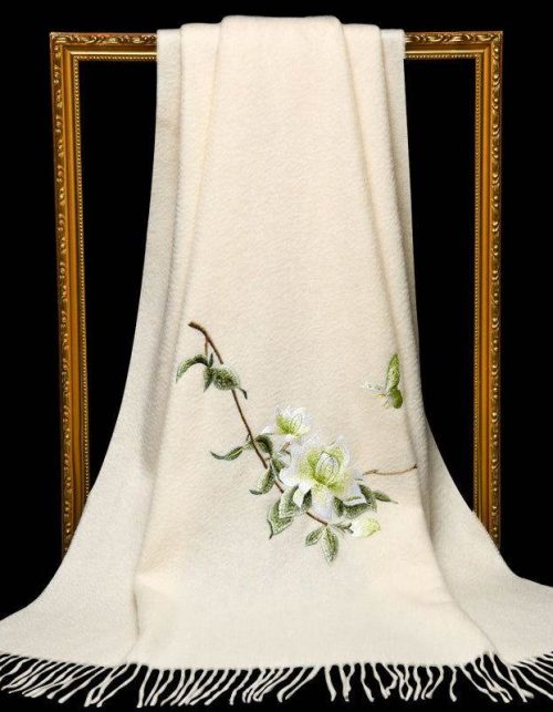 Handcrafted Su Embroidery Cashmere Scarf Premium Quality 200x60cm
