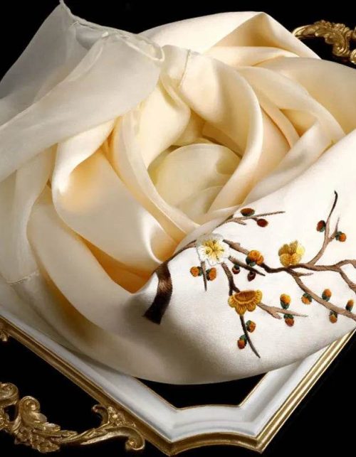 Handcrafted Embroidery Silk Scarf Luxurious 16 Momme Design 155x35cm